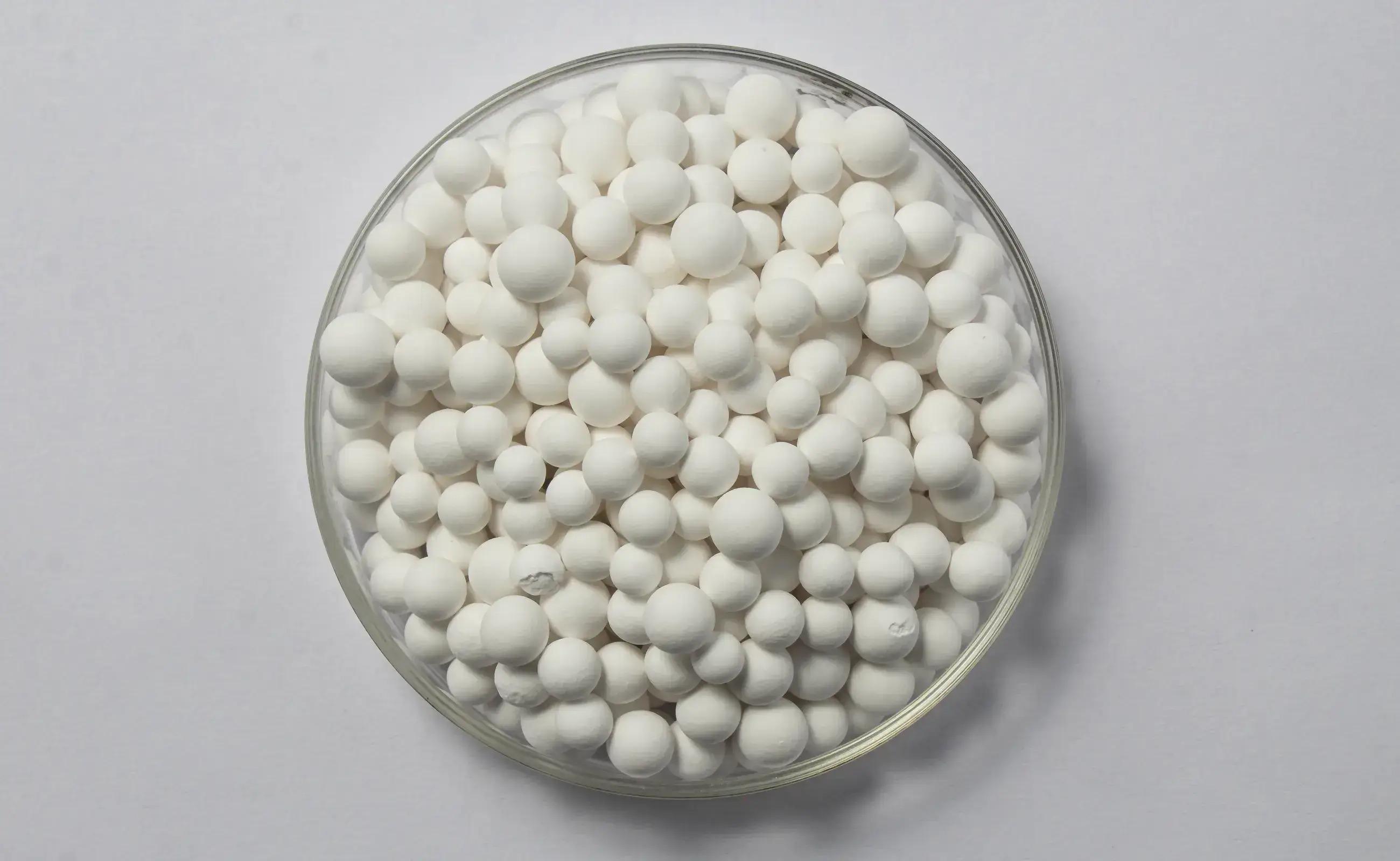 Activated alumina balls are highly porous, granular forms of aluminum oxide used widely for adsorption, filtration, and purification applications. Produced by dehydroxylating aluminum hydroxide, these spherical pellets offer a high surface area, excellent thermal stability, and remarkable moisture-absorbing capabilities. They efficiently remove impurities such as fluoride, arsenic, moisture, and acidic contaminants from liquids and gases. Commonly used in water treatment plants, oil and gas processing units, air-drying systems, and chemical industries, activated alumina balls ensure improved product quality and operational efficiency. Their regenerable nature allows multiple reuse cycles, making them a cost-effective and environmentally friendly adsorption media.