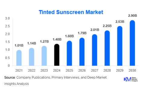 According to Deep Market Insights, the global Tinted Sunscreen Market size is projected to grow from USD 1.6 Billion in 2025 to reach USD 2.9 Billion by 2030, expanding at a CAGR of 12.1% during the forecast period (2025–2030).