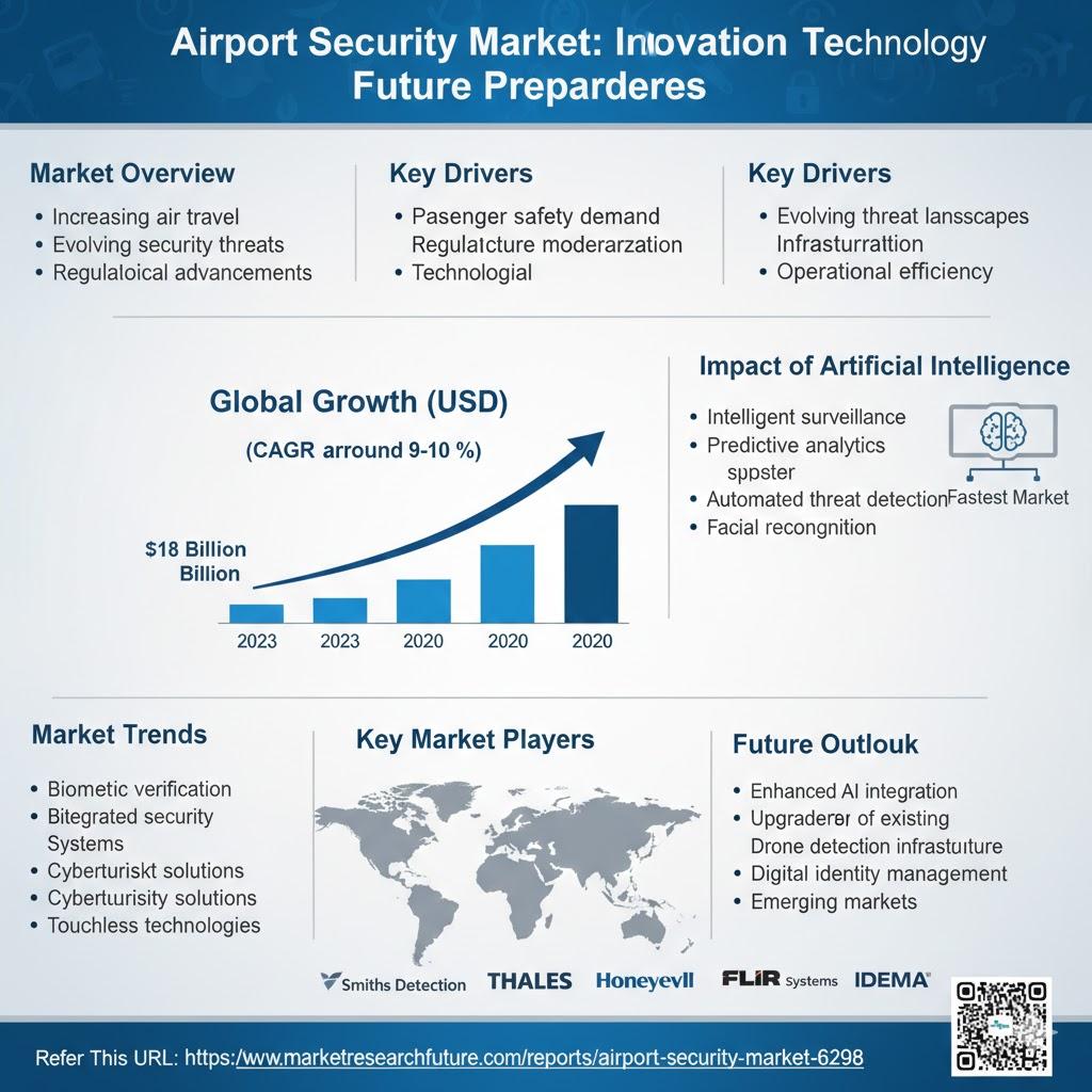 The future outlook of the airport security market remains highly positive. Emerging technologies such as digital twins, autonomous surveillance systems, and predictive risk analytics will redefine airport security operations.
