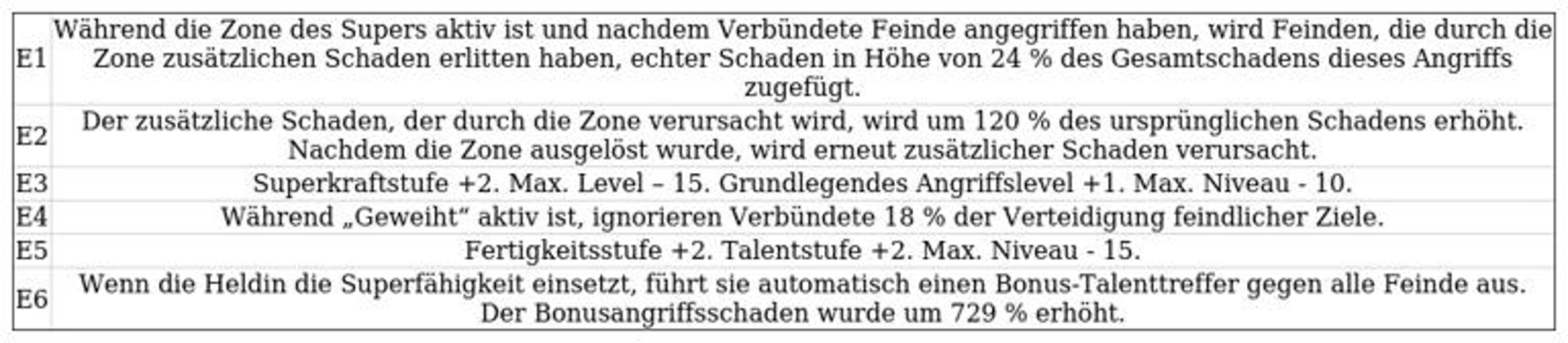 - Supermacht: Steigert sowohl den erlittenen Schaden bei Feinden als auch den von Verbündeten verursachten Schaden.