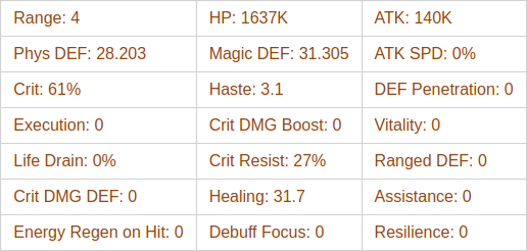 Additionally, she periodically empowers the top-performing, healthy ally, boosting their Attack by 13% and Haste by 11 for a short duration.
