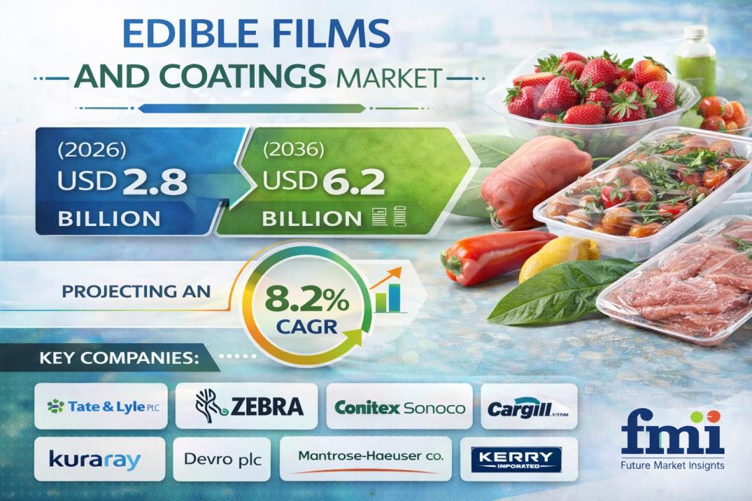 The Edible Films and Coatings Market was valued at USD 2.6 billion in 2025 and is projected to grow steadily to USD 6.2 billion by 2036, according to Future Market Insights. Demand is expected to reach USD 2.8 billion in 2026, expanding at a CAGR of 8.2% throughout the forecast period. Growth is primarily driven by measurable food waste reduction programs, tightening packaging waste regulations, and innovations in antimicrobial and antioxidant coating technologies that extend shelf life across perishable and processed food categories.