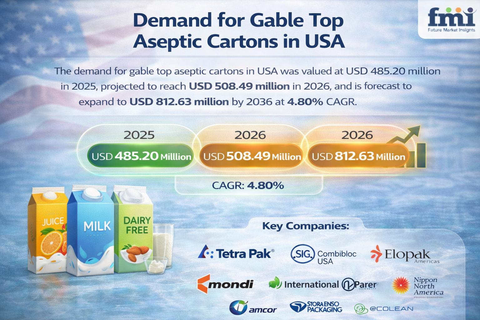 The USA gable top aseptic cartons market follows a structured growth curve across the decade: