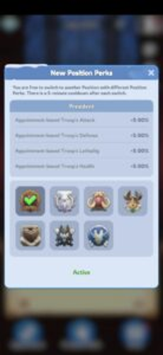 Danh hiệu được chỉ định bởi tổng thống bang khi Sunfire Castle và chu kỳ State of Power bắt đầu; tổng thống đó có quyền trao cả buff và hình phạt cho các thành viên.