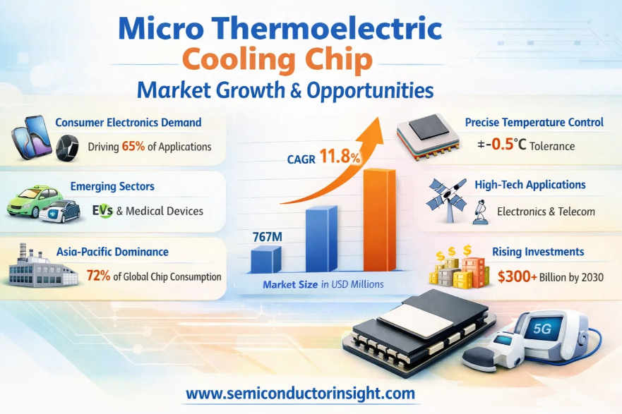 Global Micro Thermoelectric Cooling Chip Market, valued at US$ 767 million in 2024, is poised for remarkable expansion, projected to reach US$ 1645 million by 2032. This robust growth, representing a compound annual growth rate (CAGR) of 11.8%, is detailed in a comprehensive new report published by Semiconductor Insight. The study underscores the pivotal role these advanced thermal management components play across high-tech sectors, particularly in electronics, medical devices, and telecommunications infrastructure.