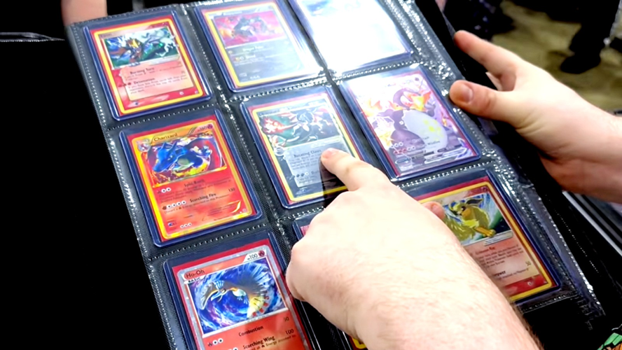 Một người bán hàng há hốc mồm khi anh ta từ từ lật qua cuốn sổ của một fan trẻ tuổi, mỗi trang tiết lộ một thẻ Pokémon hiếm khác.