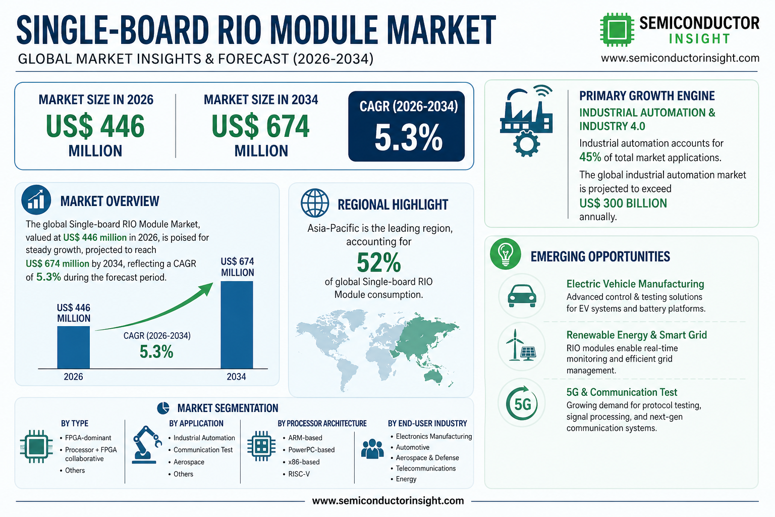 Global Single-board RIO Module Market, valued at US$ 403 million in 2024, is poised for steady growth, projected to reach US$ 574 million by 2032. This expansion, reflecting a compound annual growth rate (CAGR) of 5.3%, is detailed in a comprehensive new report published by Semiconductor Insight. The study underscores the pivotal role of these reconfigurable I/O modules in enabling high-performance embedded control and data acquisition across industrial automation, aerospace, and communication test applications.