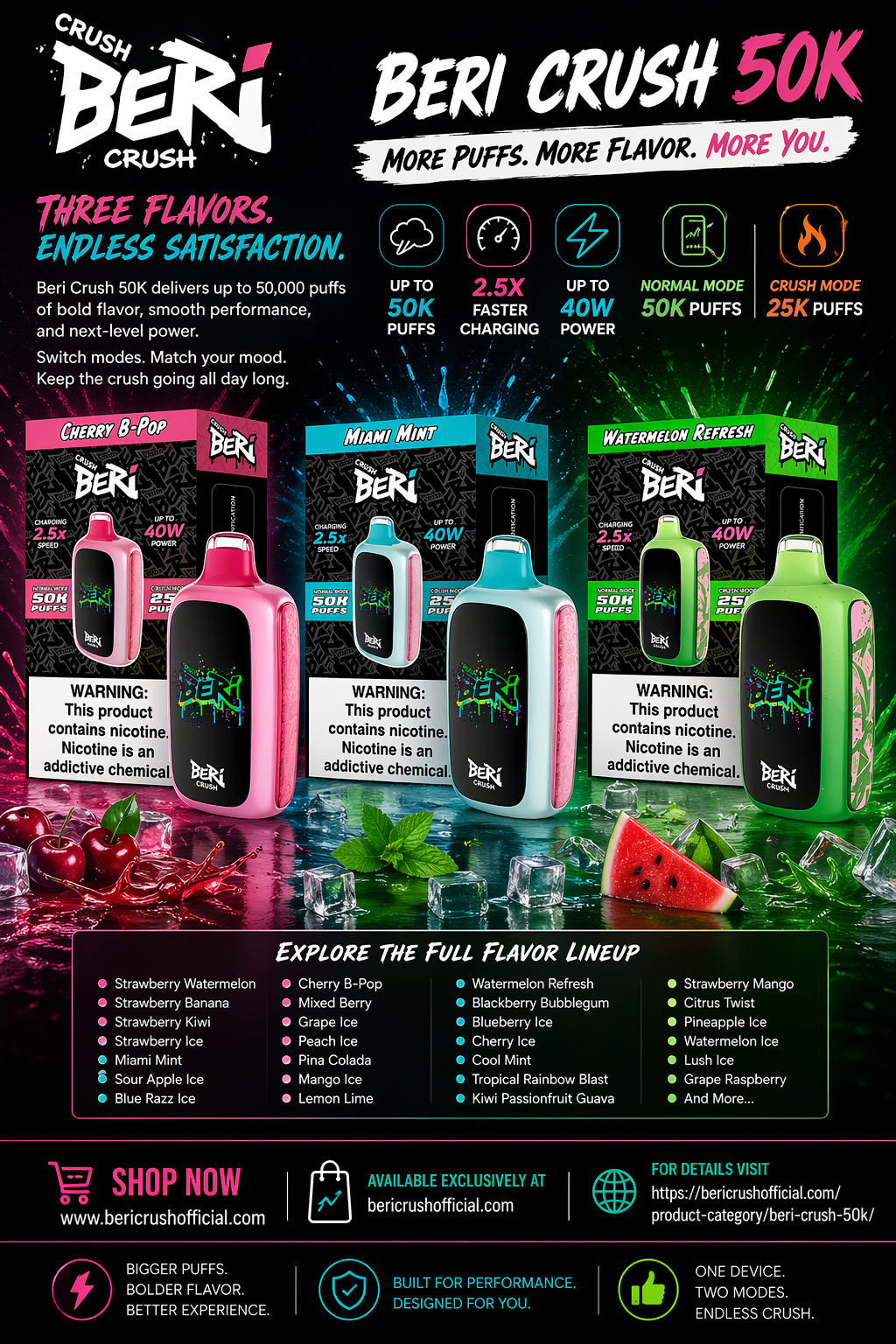 The Beri Crush 50K isn’t just about big puff counts—it’s about control. With Normal Mode and Crush Mode, you can tailor every hit to match your vibe.